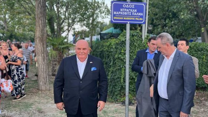 Tablu sa imenom Dragana Markovića Palme tada su na prigodnoj svečanosti pre dve godine otkrili gradonačelnik grada Katerini Konstantinos Kuokodimos na čijoj teritoriji se nalazi ova ulica duga 6,5 kilometara i Dragan Marković Palma.