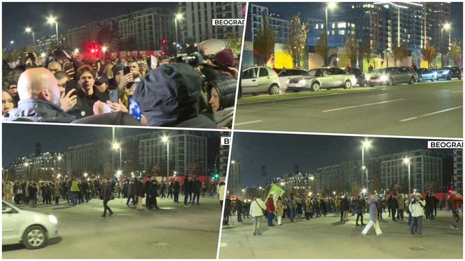 A već u prvim minutima blokade je nastao haos na raskrsnici i došlo je do verbalnog okršaja sa ljudima koji su želeli da prođu.