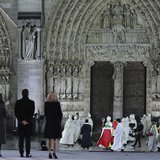 U 19.10, zvona Notr Dama su se oglasila prvi put posle pet godina, što su zvanice u katedrali i građani okupljeni na trgu ispred u tišini ispratili.