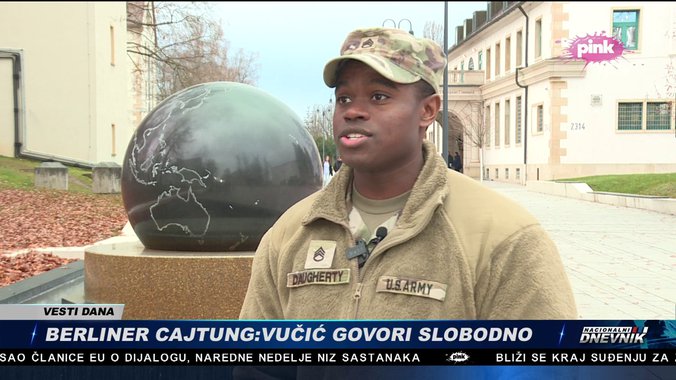 Ekipa TV Pink razgovarala je sa američkim narednikom Eronom Doertiem koji je rekao da je ovo prvi put da je stacioniran u Evropi.