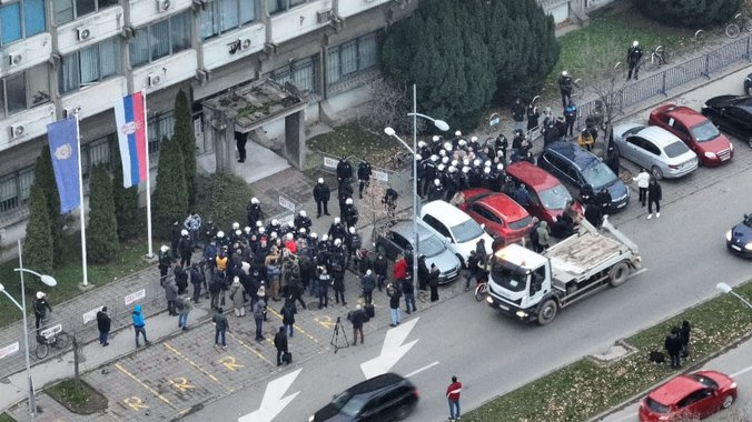 Opozicioni političari blokirali su zgradu Policijske uprave u Novom Sadu, u Kraljevića Marka.