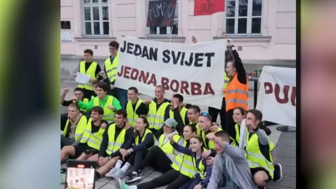 Odrekli se ćirilice zarad Severine! Jadno i sramotno. I ne samo to! Dojiče vele prenosi tekst i sliku srpskih studenata, ankon što su stigli, ispred gimnazije u Virovitici, kako nasmejani u rukama drže transparent ispisan na jekavici. I na latinici: "Jedan svjet, jedna borba".