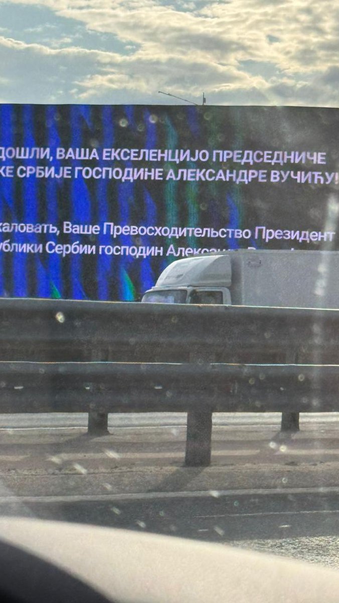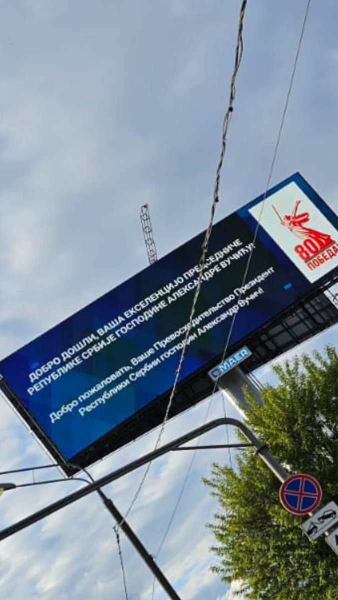 - Dobro došli, Vaša Ekselencijo predsedniče Republike Srbije gospodine Aleksandre Vučiću - piše na bilbordu na srpskom i ruskom jeziku.