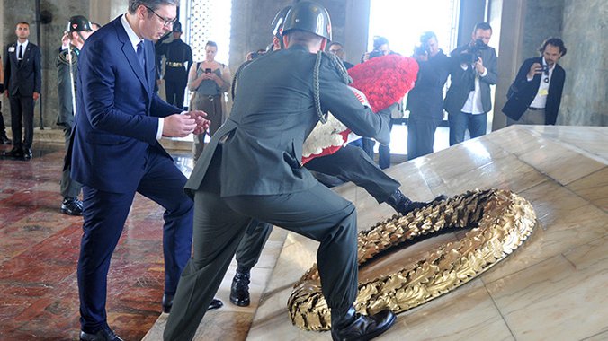 Drugog dana zvanične posete Turskoj, na poziv predsednika Redžepa Tajipa Erdogana, predsednik Srbije Aleksandar Vučić položio je venac i odao počast osnivačku moderne turske države Mustafi Kemalu Ataturku.