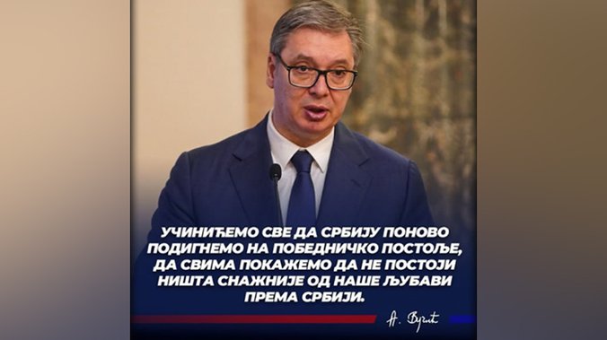 "Učinićemo sve da Srbiju ponovo podignemo na pobedničko postolje, da svima pokažemo da ne postoji ništa snažnije od naše ljubavi prema Srbiji", objavio je predsednik storiju svog profila.