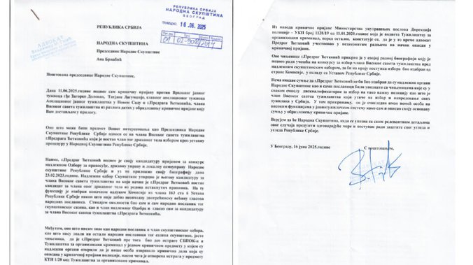 Predsednik Narodne stranke advokat Vladimir Gajić, obavestio je danas zvaničnim dopisom predsednicu Skupštine Srbije Anu Brnabić da je član Visokog saveta tužilaštva Predrag Ćetković u svojoj kandidaturi za članstvo u tom telu prikrio da je bio deo istrage u pretkrivičnom postupku koji je protiv njega vodilo Tužilaštvo za organizovani kriminal za pranje novca.