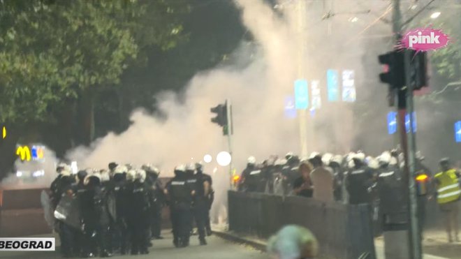 - Na više tačaka je policija morala da interveniše, jer građani koji su hteli da prođu prema drugom skupu i izazovu dalje sukobe nisu slušali naređenja policijskih službenika. Sve jedinice Ministarstva unutrašnjih poslova i Direkcije policije su postupale krajnje profesionalno, upotrebljena je opet minimalna sila, minimalna sila da bi oni koji napadaju policiju, koji napadaju državu, u tome budu onemogućeni - rekao je Vasiljević.