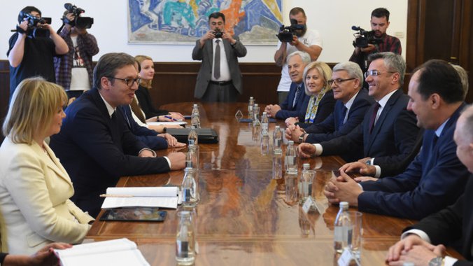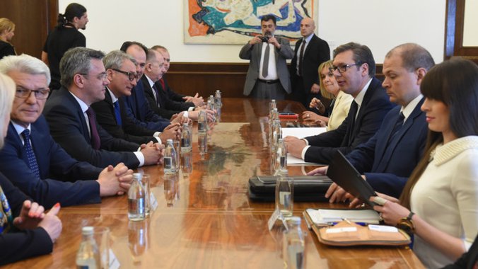 Predsednik Republike Srbije Aleksandar Vučić sastao se danas sa delegacijom Kolegijuma doma naroda i Predstavničkog doma Parlamentarne skupštine Bosne i Hercegovine sa kojima je razgovarao o bilateralnim odnosima, situaciji u regionu i evropskoj budućnosti dveju zemalja.