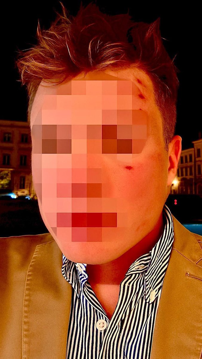 Prema njegovim rečima, prvo mu je prišla žena, strgnula mu kačket s glave i nazvala ga „rasistom“. Ubrzo su mu prišla trojica muškaraca – severnoafričkog porekla, starosti između 20 i 25 godina, koji su govorili francuskim akcentom. Opsovali su ga, nazvali „nacistom“ i zadali mu više udaraca u glavu. Mladić je zadobio potres mozga, posekotine na potiljku i morao je hitno biti ušiven.