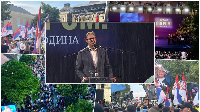 - Našli su sluge, ali malo takvih ima. Najveći deo srpskog naroda neće da se odrekne svog srpskog imena i prezimena, i ne diramo u tuđe države, samo hoćemo da čuvamo svoje srpskog ime i prezime. Ne razumete šta radite, mislite da možete da nas unizite i uplašite, ali nećemo da vas služimo. Daćemo sve od sebe da čuvamo mir, i molim Dodika i sve u RS da čuvaju mir. Molim sve u Republici Srpskoj da se borite za očuvanje i opstanak RS. A ja imam odavde da poručim — samo da vam kažem, garantujem u ime Republike Srbije i u moje ime biće i živeće Republika Srpska i ništa joj nećete moći, svi zajedno!