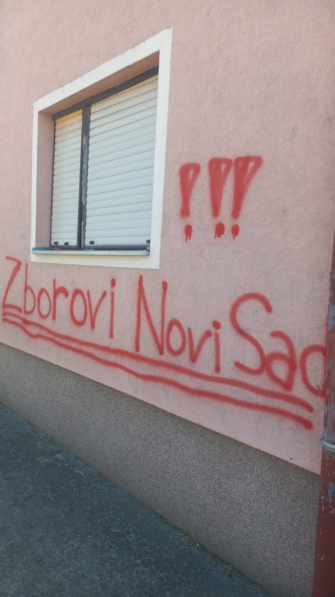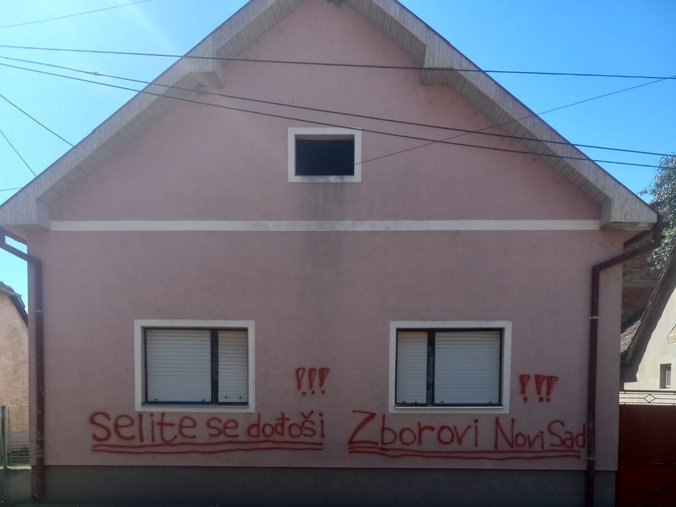 U pitanju je kuća u Futogu u kojoj živi Balaćeva baka, a na njenim zidovima se sada nalazi preteća poruka: "Selite se, dođoši".