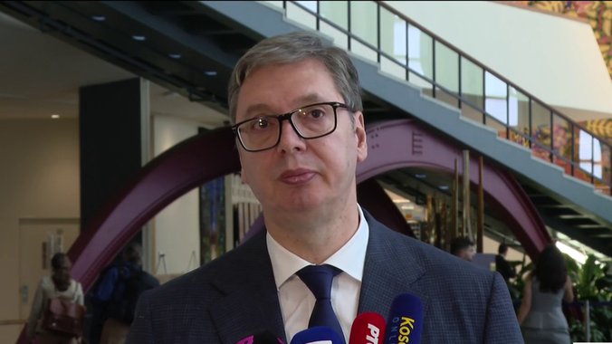 Predsednik Srbije Aleksandar Vučić obraća se medijima nakon brojnih sastanaka koje je danas imao u Njujorku.