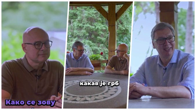 U svojevrsnom sportskom kvizu predsednik Srbije i njegov savetnik za regionalni razvoj odgovarali su na različita pitanja, počev od toga kako se zovu navijači kruševačkog Napretka, koliko je Srbija osvojila medalja na Olimpijskim igrama 2020. u Tokiju, koji je stranac prvi poneo kapitensku traku u fudbalskom klubu Crvena zvezda, i koji reprezentativac Srbije je nosio kapitensku traku u holandskom Ajaksu.
