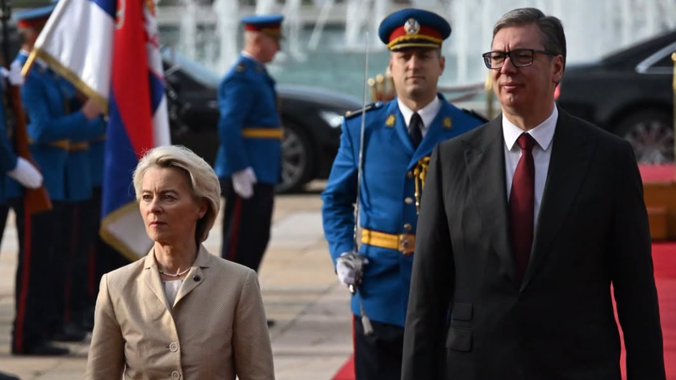 Predsednik Republike Srbije Aleksandar Vučić bio je na ceremoniji svečanog dočeka predsednice Evropske komisije Ursule fon der Lajen, koja boravi u zvaničnoj poseti Srbiji.