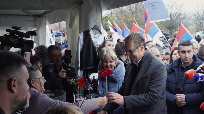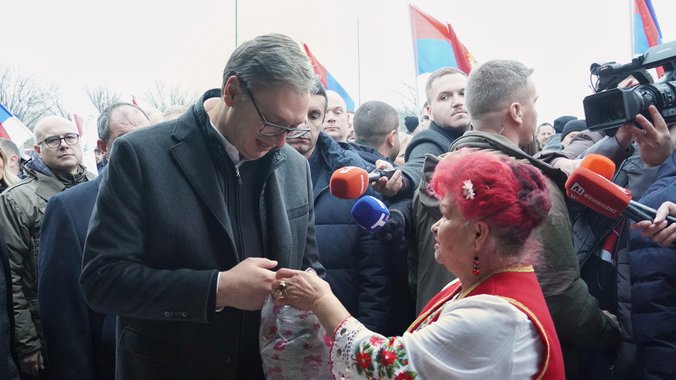 - Znam, ali me zanima šta još možemo da uradimo - pitao je predsednik Vučić. Atmosfera u selu je vesela, čuju se tamburaši i na sve strane se vijore trobojke.