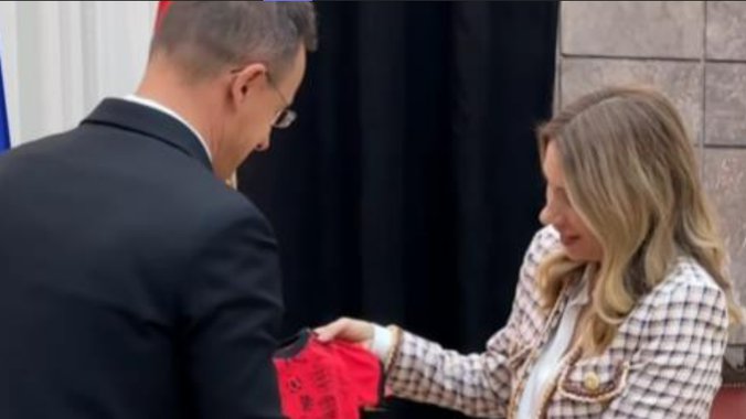 "Moja dvomesečna ćerka dobila je od šefa mađarske diplomatije dve knjige za decu o Budimpešti, kao i benkicu i bodi fudbalskog kluba Honved čiji je predsednik, i to sa njenim imenom na leđima. Budući da razmatra saradnju sa Crvenom zvezdom kako bi se dobro pripremio, poklonila sam mu loptu sa potpisima igrača. Verujem da će je u retko slobodno vreme koristiti i za igru sa sinovima".
