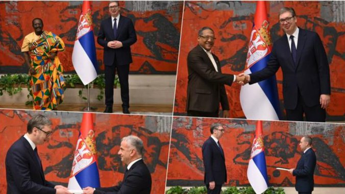 Predsedniku Aleksandru Vučiću akreditive su predali novi ambasador Libana Jusef Žabr, novoimenovani ambasador Kube Pavel Orensia Dijas Enandes, kao i novoimenovani ambasadori Gane i Bugarske, Kvesi Ahvoj i Angel Angelov.