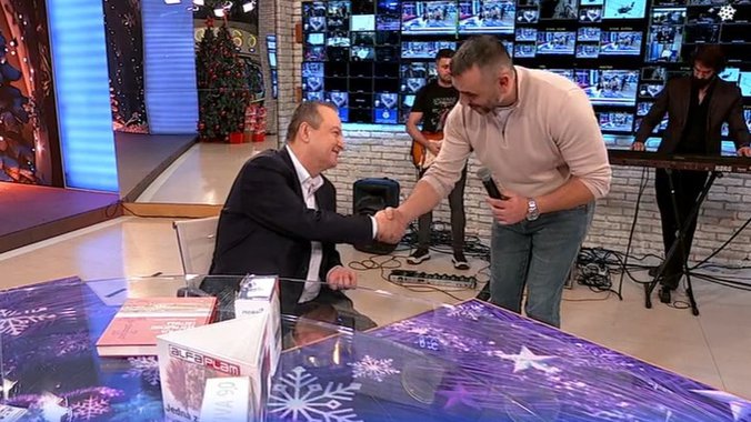 S obzirom da ministar danas slavi rođendan, njemu je na samom početku uručen poklon, ali mu je posvećena i pesma 'Miljacka' koju on često zna i sam da zapeva.