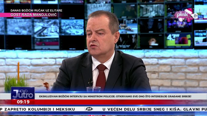 Potpredsednik Vlade i ministar unutrašnjih poslova Ivica Dačić, u Jutru sa dušom kod Jovane Jeremić na TV Pink, najpre je svima čestitao Božić i poželeo svima mir i istakao da nam to nedostaje i da je u svetu u čitavoj istoriji bilo više godina ratova nego mira.