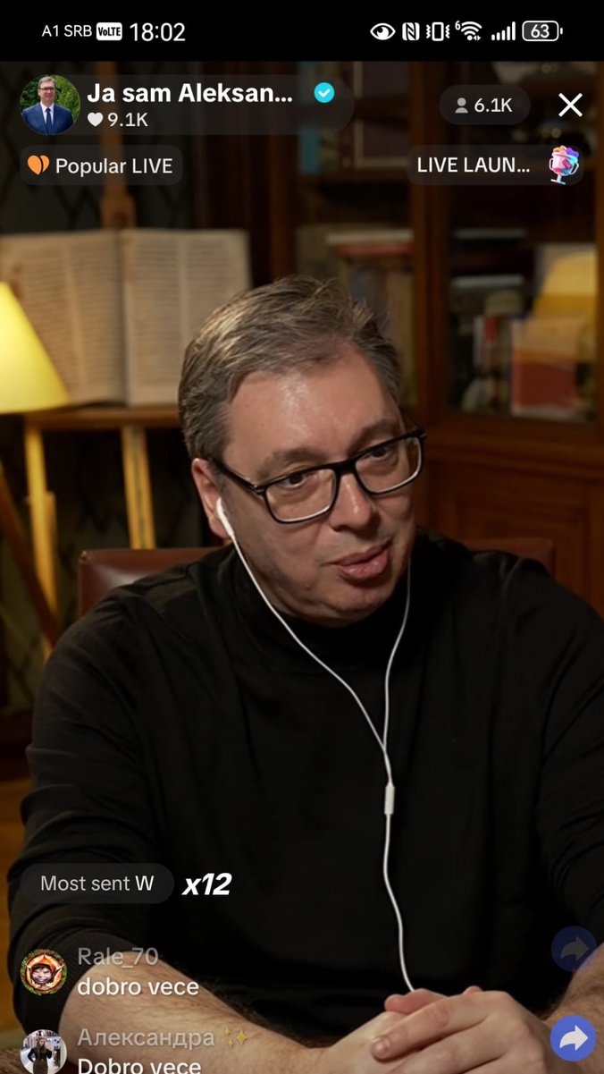 Predsednik Republike Srbije Aleksandar Vučić po prvi put održao je TikTok lajv.