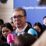 Predsednik Republike Srbije Aleksandar Vučić prisustvovao je danas u Kineskom kulturnom centru u Novom Beogradu prezentaciji robota kompanije AGIBOT Innovation.