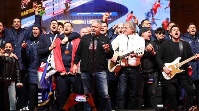 Doček hrvatskih rukometaša u Zagrebu prerastao u političko-ideološki skandal: Vlada Hrvatske preuzela organizaciju kako bi nastupio Marko Perković Tompson, uz ustaške simbole, pesme i pozdrav "Za dom spremni", bez reakcije institucija.