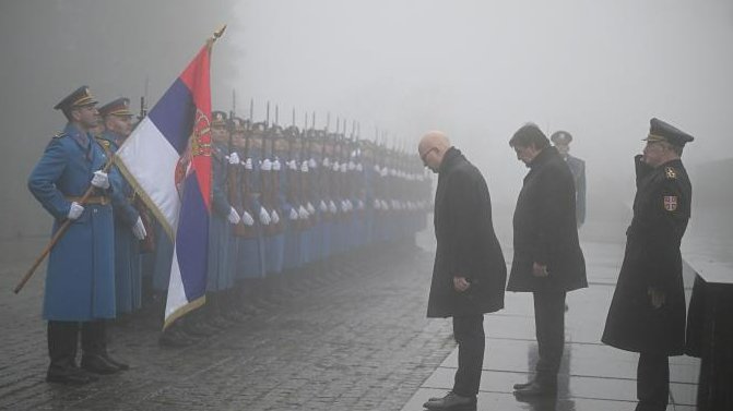 Izaslanik predsednika Republike i vrhovnog komandanta Vojske Srbije Aleksandra Vučića savetnik predsednika Miloš Vučević, u pratnji ministra odbrane Bratislava Gašića i načelnika Generalštaba Vojske Srbije generala Milana Mojsilovića, položio je danas venac na Spomenik neznanom junaku na Avali povodom Sretenja - Dana državnosti Srbije.