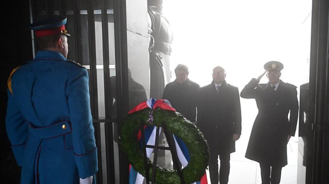 „U ime predsednika Republike Srbije Aleksandra Vučića i zahvalne otadžbine, poklanjam se moštima neznanog junaka, povodom Dana državnosti 2026. godine Gospodnje.