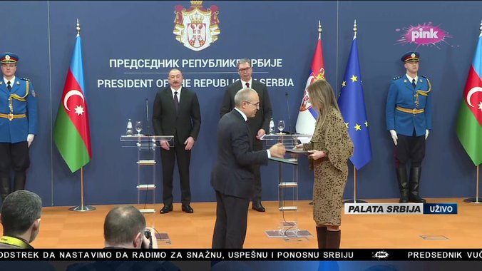 Tokom posete potpisani su bilateralni dokumenti, a predsednici Vučić i Alijev potom su se obratiti medijima na zajedničkoj konferenciji posle razgovora u četiri oka i potpisivanja bilateralnih sporazuma.