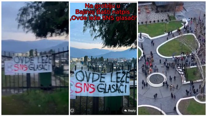 Juče su u Bajinoj Bašti održali razočaravajući protest, na kojem se pojavila tek nekolicina ljudi, a na groblju je osvanuo sraman transparent sa natpisom "Ovde leže SNS glasači".