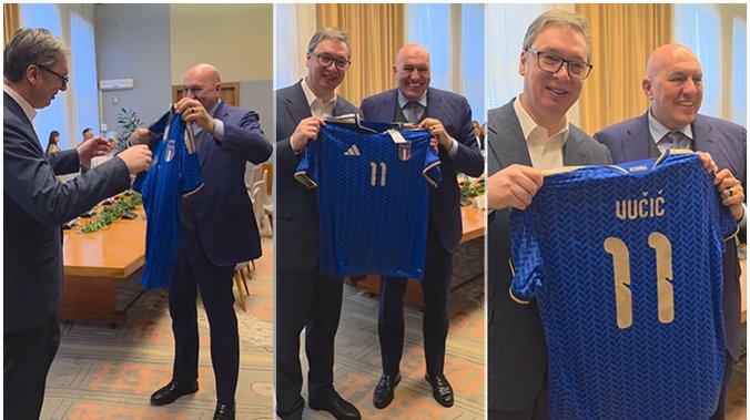 Ministar Krozeta je predsedniku Vučiću poklonio dres italijanske fudbalske reprezentacije sa brojem 11.