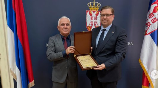 Direktor Uprave za saradnju sa dijasporom i Srbima u regionu pri Vladi Srbije Vladimir Kokanović primio je plaketu kao izraz zahvalnosti na pružanju podrške narodu na Kosovu i Metohiji.