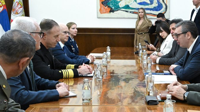 Predsednik Srbije Aleksandar Vučić sastao se danas u Beogradu sa komandantom Komande združenih snaga NATO u Napulju admiralom Džordžom Vajkofom.