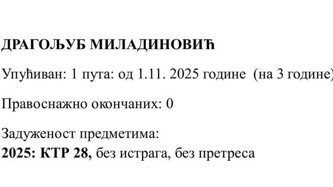 Tužilac Dragoljub Milovanović upućen je odlukom vrhovne tužiteljke u novembru prošle godine i još nema nijednu istragu.