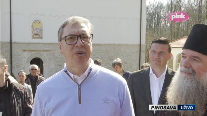 12:50 - Predsednik Vučić stigao u manastir Pinosava u selu Kusadak