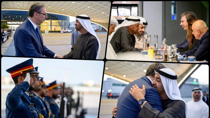 Zahvalan predsedniku Mohamedu bin Zajedu na srdačnom gostoprimstvu, otvorenom i sadržajnom razgovoru, kao i na odnosu koji pokazuje prema Srbiji. U ovakvim nelakim vremenima, važno je imati prijatelje koji razumeju težinu trenutka, ali i značaj mira, stabilnosti i saradnje za budućnost naših naroda.", istakao je predsednik Srbije.