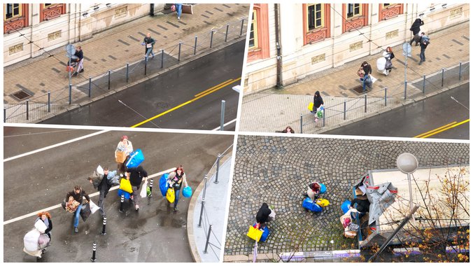 Od ranih jutarnjih časova na Studentskom trgu u Beogradu primećena je grupa mlađih lica, koja nose velike, prepune plastične kese i druge stvari, iznose ih zgrade Rektorata Univerziteta u Beogradu i ubacuju ih kamion parkiran preko puta.