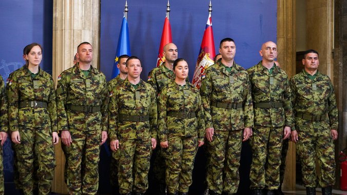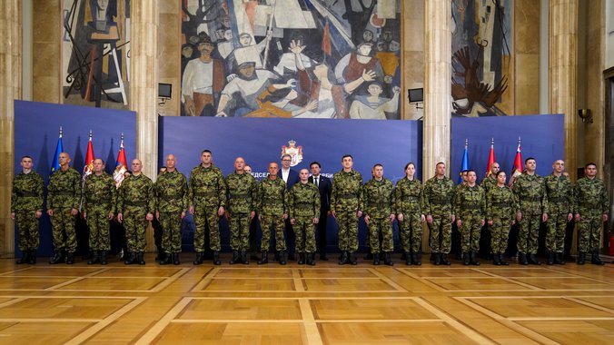 Predsednik Aleksandar Vučić u zgradi Generalnog sekretarijata predsednika Republike dočekuje pripadnike Vojske Srbije, koji su uspešno završili misiju u Libanu.