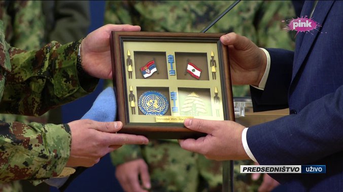 Pripadnici Vojske Srbije, koji su uspešno završili misiju u Libanu, uručili su Vučiću i simboličan poklon.