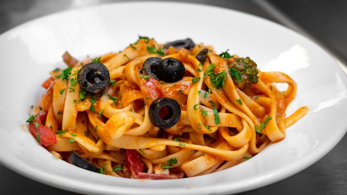 Sastojci: 300 grama brašna, 3 jaja, dva čena belog luka, konzerva paradajza pelata, sušeni origano, crno vino, maslinovo ulje, tucana paprika, so, biber, parmezan