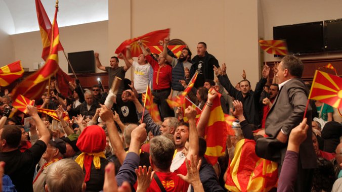 Poslanici stranke Albanaca u Makedoniji DUI su, zajedno sa predstavnicima Socijaldemokratskog saveza Makedonije (SDSM) u Sobranju, u četvrtak uveče spornim glasanjem izabrali novog predsedavajućeg parlamenta Talata Džaferija, nakon čega su pristalice VMRO-DPMNE bivšeg premijera Nikole Gruevskog i inicijative "Za zajedničku Makedoniju" upali u Sobranje.