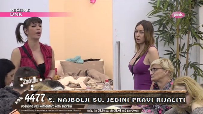 Ne obraćajte pažnju na ovu naduvanu ćuftu. Ti si napumpana u rijalitiju. Drage devojke kojima sam ja uzor nemojte da dozvolite da vas ovako neko napumpa u rijalitiju, da onda otac neće da prihvati to vaše dete. Ja ne znam ko mi je otac ali makar me nije napravio u rijalitiju. Napolju ima stotinu prostitutki koje makar stavljaju kondom. A što ti nisi ispala poštena? Od čega ćeš da izdržavaš dete? - bockala je Diskrecija trudnicu.