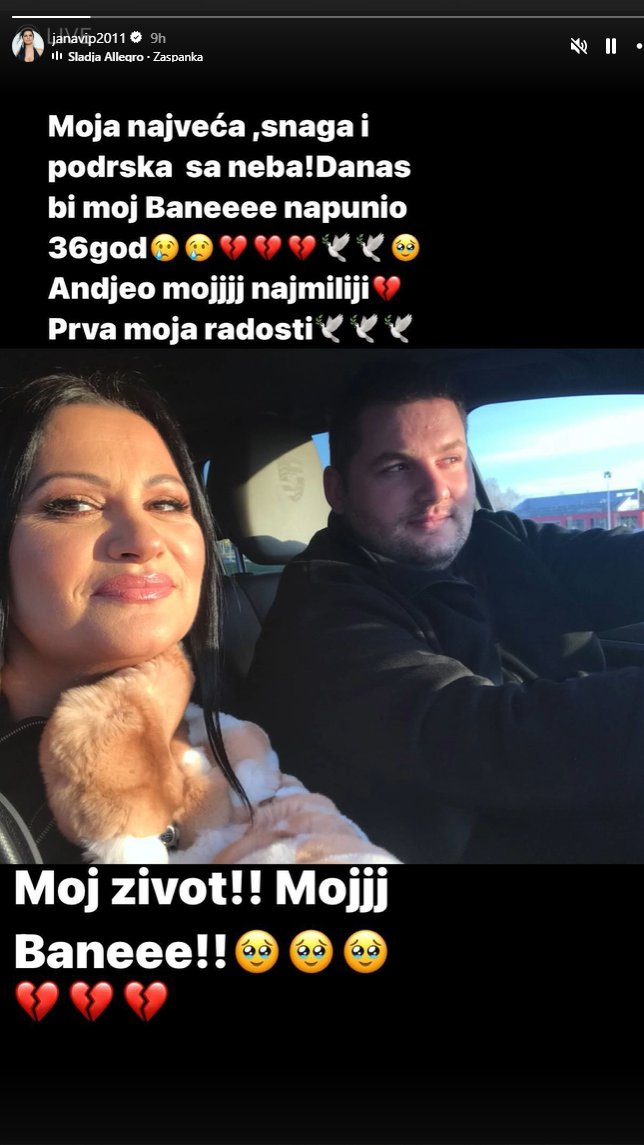 - Moja najveća snaga i podrška sa neba! Danas bi moj Bane napunio 36 godina. Anđeo moj najmiliji, prva moja radosti. Moj život, moj Bane– napisala je Jana uz emotikone slomljenih srca.