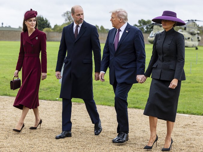 Dva para su potom šetala jedan pored drugog Vilijam i Tramp su razgovarali u sredini grupe, a američki predsednik je držao svoju suprugu Melaniju za ruku.