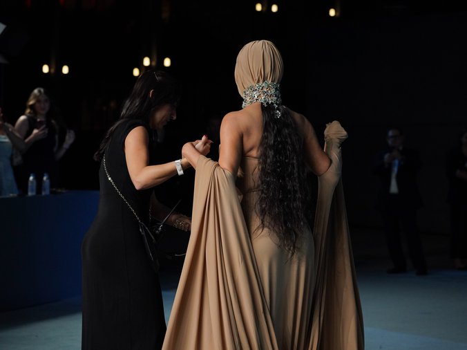 Kim, koja ima 44 godine i stoji iza uspešnog brenda Skims, pojavila se na događaju u haljini i maski u boji kože, koje su je u potpunosti prekrivale – uključujući i lice i glavu. Maska je bila toliko zatvorena da se činilo da jedva vidi ispred sebe. Ipak, glamur nije izostao – nosila je dijamantsku ogrlicu i raskošnu couture haljinu modne kuće Maison Margiela.