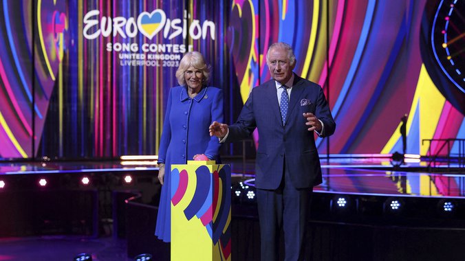 Liverpul će biti domaćin takmičenja za pesmu Evrovizije umesto prošlogodišnje pobednice Ukrajine, koja zbog ruske invazije ne može da organizuje spektakl. Uz odbrojavanje, Čarls i Kamila otkrili su scenu pritiskom na veliko ružičasto dugme, koje je aktiviralo niz šarenih svetala bine uz pulsirajući ritam.
