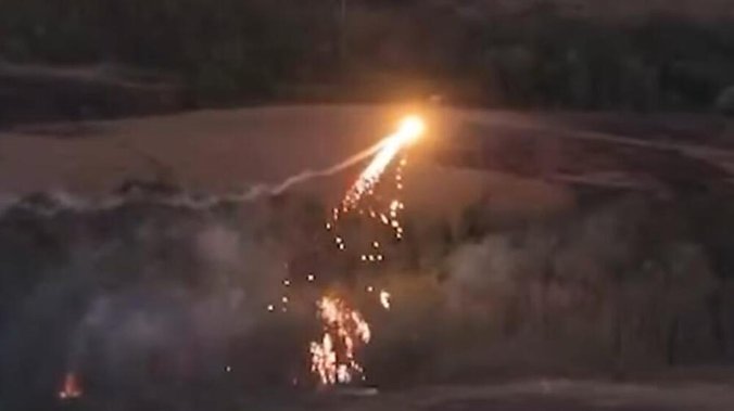 Ukrajinska 118. brigada Teritorijalne odbrane objavila je snimak na kojem se vidi njihov dron koji sipa tečni metal po ruskim vojnicima skrivenim u šumi na frontu dok oni sa zemlje pucaju na bespilotnu letelicu.
