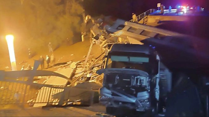 The bridge collapsed onto a passenger train travelling on the #Moscow – #Klimovo line. The train derailed. pic.twitter.com/UOK3Adharq