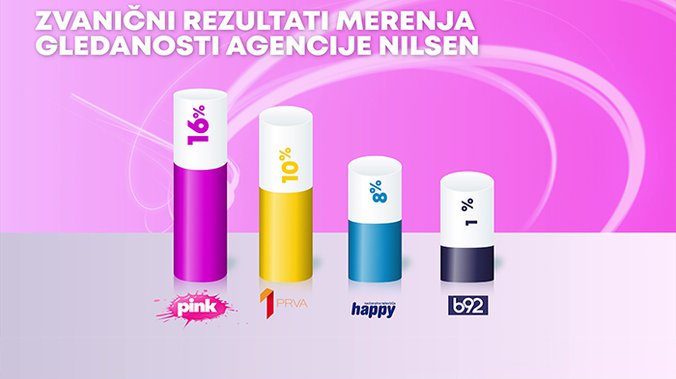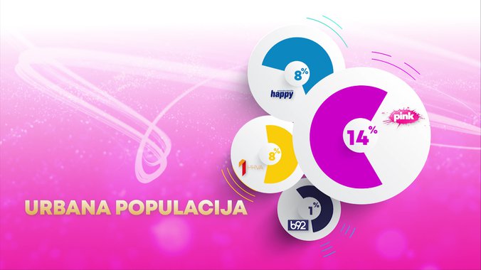 Televizija Pink bila je gledanija od svih komercijalnih emitera u totalu,među gledaocima starosti od 18 do 49 godina,među gledaocima sa teritorije Beograda,među gledaocima iz prestonice starosti od 18 do 49 godina, i među urbanom populacijom, dok je i od Javnog servisa Srbije bila gledanija među ženskom publikom.