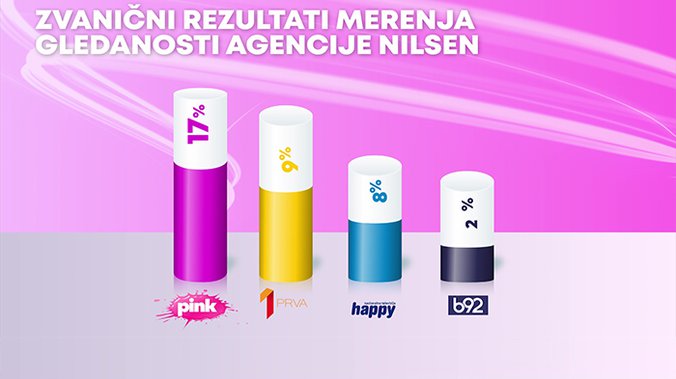 Televizija Pink bila je gledanija od svih komercijalnih emitera u totalu, među gledaocima sa teritorije Beograda, među gledaocima iz prestonice starosti od 18 do 49 godina i među urbanom populacijom, dok je od svih komercijalnih emitera, ali i Javnog servisa Srbije bila gledanija među ženskom publikom.